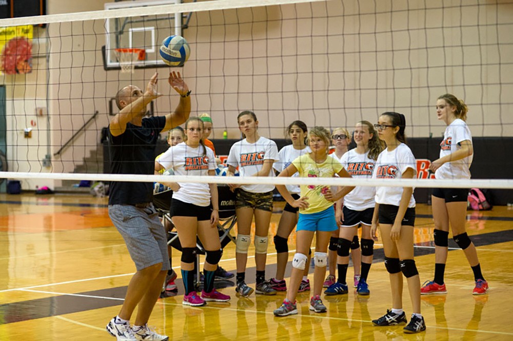 Coach Dave Wisniewski demonstrated a move during a practice session at an all-skills volleyball day camp for girls. The camp ran July 14-17. -