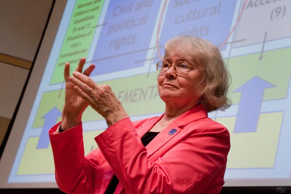 Liisa Kauppinen, former president of the World Federation of the Deaf, visited RIT/NTID the week of April 14, presenting to numerous groups on the United Nations Convention on the Rights of Persons with Disabilities. Kauppinen is a long-time WFD consultant for the United Nations and its special agencies and has been awarded the U.N. Human Rights Prize, among other international recognitions.