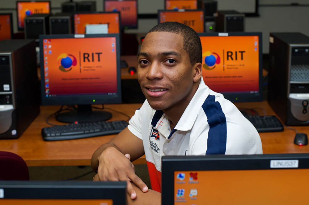 Rochester City Scholar Hassan Robinson is majoring in information technology in the B. Thomas Golisano College of Computing and Information Sciences. Robinson, who is on target to graduate in May, is part of the first graduating class of the Rochester City Scholars program. To read more, go to www.rit.edu/news/story.php?id=50630.