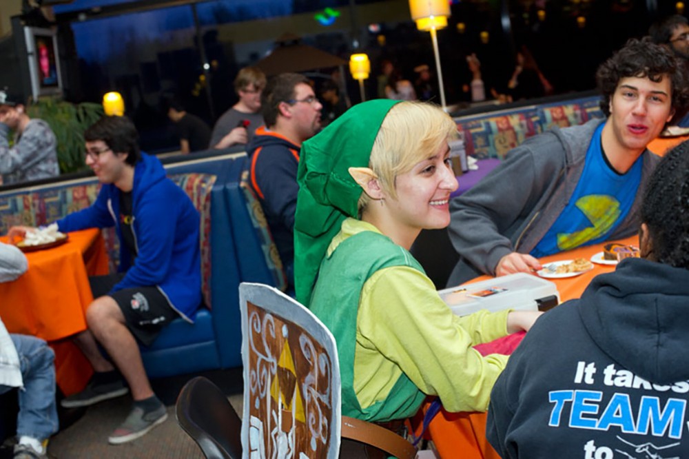 RIT students were treated to a Halloween-themed dinner at Grace Watson Dining Hall on Oct. 31. The meal included roasted chicken, grilled salmon, pumpkin ravioli, kielbasa and ghoulish desserts like chocolate pudding graves and Oreo mummies. Here, Erin Nguyen, a second-year student in 3-D design, created her costume to resemble Link from The Legend of Zelda: The Wind Waker. -
