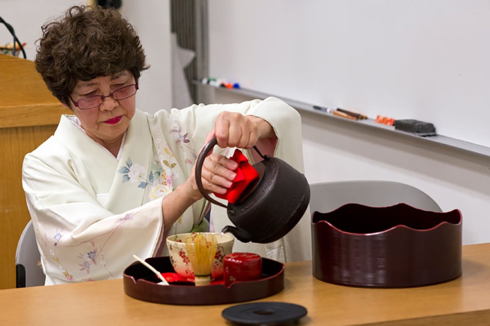 RITâs Department of Modern Languages and Cultures in the College of Liberal Arts hosted a lecture and demonstration of a Japanese tea ceremony Oct. 11. Here, Yasue Kumano, a professor from Yamaguchi University and Ikenobo Junior College in Japan, demonstrates the practice based on the spirit of Ichigo-ichie, or the opportunity of a lifetime treasuring moments spent with guests that can never be duplicated. -