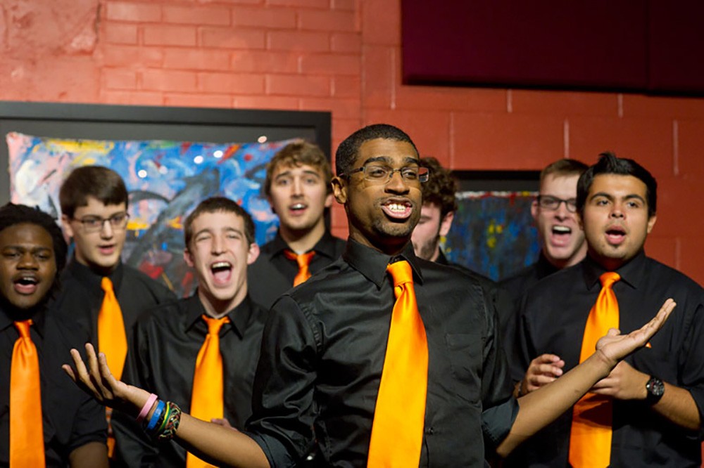 Eight Beat Measure, an RIT a cappella group, performed at the Little Cafe during the second annual Fringe Festival on Sept. 28.