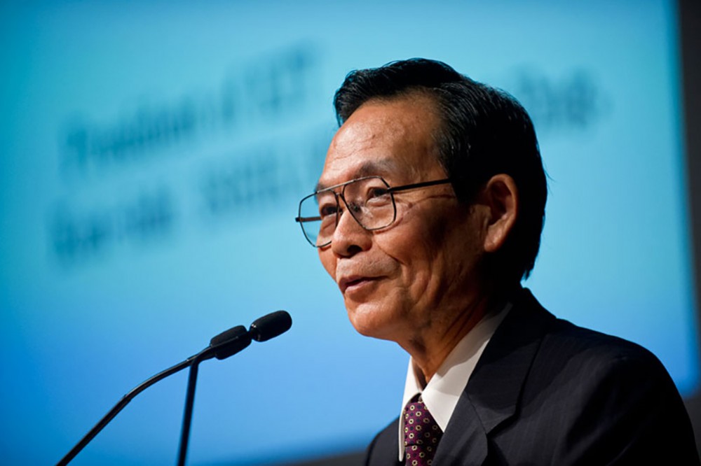 RIT President Bill Destler and Kananzawa Institute of Technology President Ken-ichi Ishikawa hosted presidential symposium âMusical Notes and Magical Knives.â Here, President Ishikawa spoke about the history of sword making in Japan. -