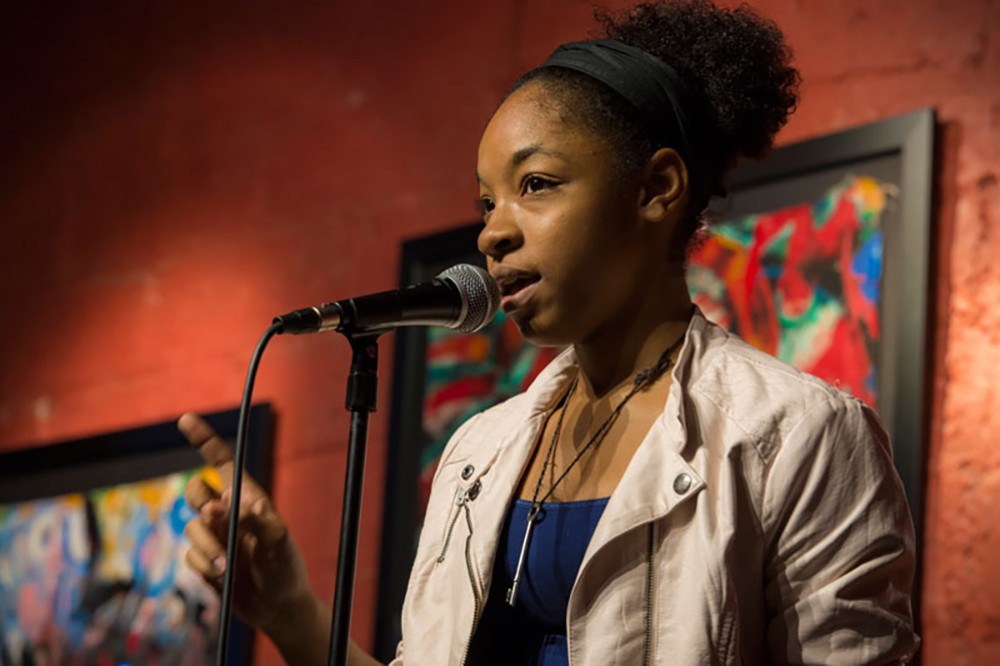 RIT joins artistic forces with local businesses and cultural organizations in downtown Rochesterâs East End for the second annual First Niagara Rochester Fringe Festival. On tap are more than 20 performances showcasing an eclectic mix of poetry readings, dance, film, theater, music and visual arts. Here, Alexis Harris, one of the RIT Poetry Slam Team, performed on Sept. 23. For a schedule of RIT-related events, go to www.rit.edu/gcr/fringefest/. -