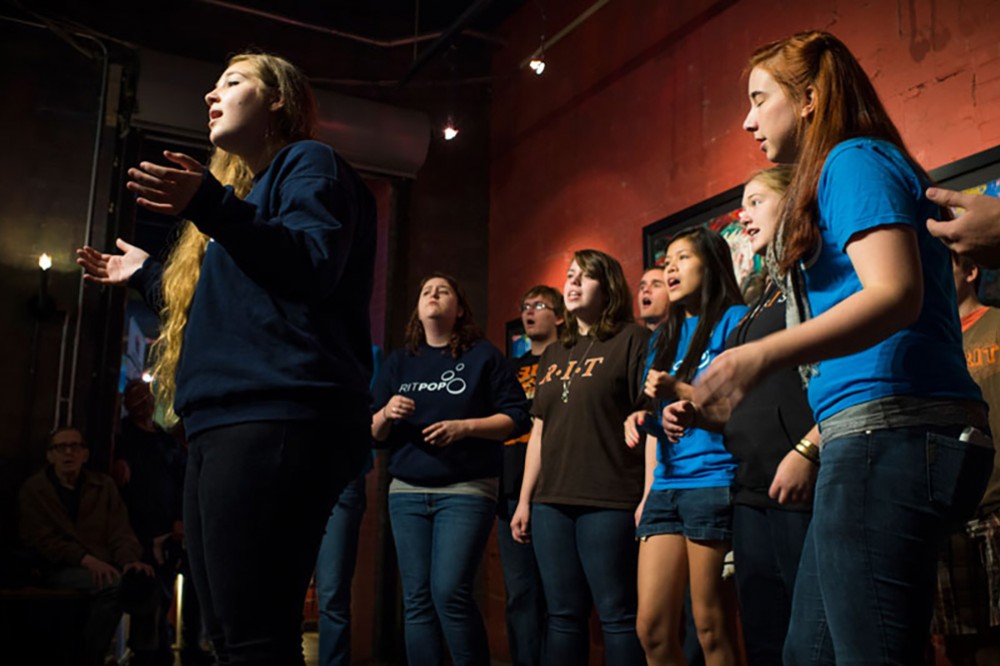One of RITâs a cappella groups, Proof of Purchase, performed at the Little Cafe during the second annual Fringe Festival on Sept. 22. The festival continues through Saturday. To see a schedule of RIT-related performances, go to www.rit.edu/gcr/fringefest. -