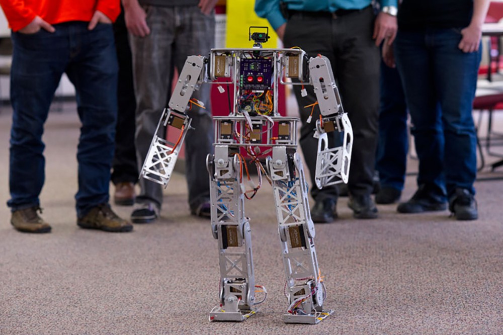 The 3-foot-tall technology wonder walking the halls of the Kate Gleason College of Engineering is TigerBot III, RITâs humanoid, autonomous robot. TigerBot III was developed by the engineering senior design project team of Chris Atwood, Graeme Buckley, Rachel Lucas, Nick Towle and Sasha Yevsitifeev, with mentoring by faculty advisers Ferat Sahin and George Slack. To read more, go to www.rit.edu/news/athenaeum_story.php?id=49918. -