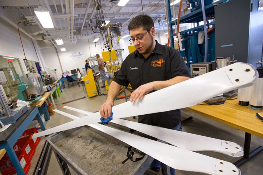 Rob Aldi showcased his composite material products, including turbine blades used to generate wind power, at last yearâs Imagine RIT festival. -