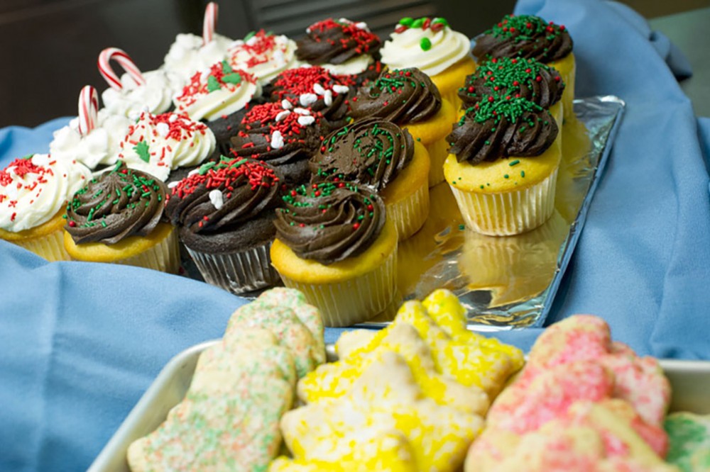 RIT students were treated to a holiday-themed dinner at Grace Watson Dining Hall on Dec. 4. The meal included roasted turkey, steak, salmon, ham, quinoa and eggplant and a variety of desserts. Music was by Me & The Boyz and the Magic Guy provided some tableside tricks. -