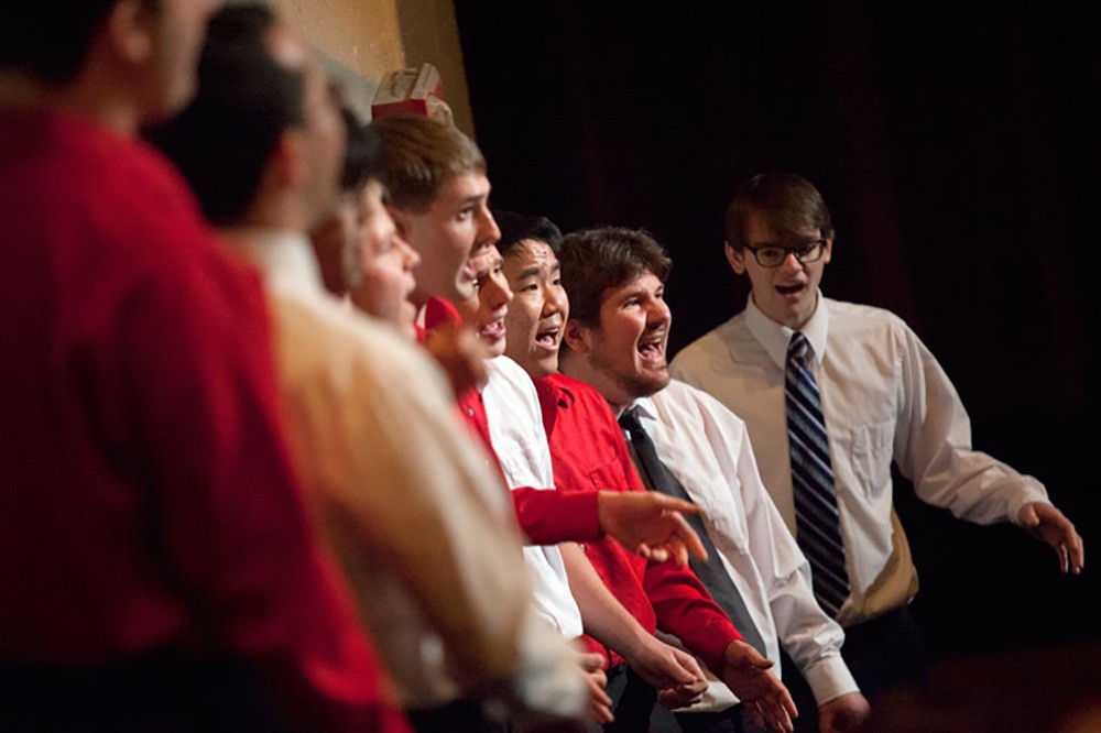 The Center for Campus Life and the College of Liberal Arts presented âMusic for the Holidaysâ on Dec. 8. The RIT Gospel Ensemble and groups from the RIT Music Program performed, including the a cappella group Surround Sound, above. -
