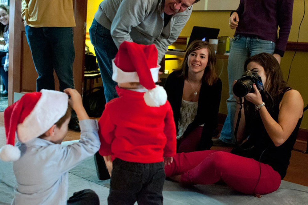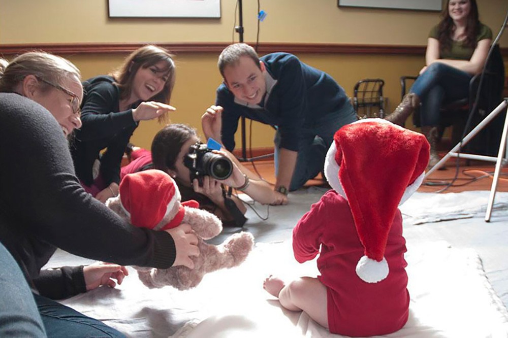 RIT photography students worked hard throughout the weekend to get their little subjects to smile for the camera. This was part of the School of Photographic Arts and Sciencesâ portrait sittings. Sittings are being offered again this weekend, 10 a.m. to 5 p.m. Dec. 15 and 11 a.m. to 5 p.m. Dec. 16 at the Crossroads Building. Donning a Santa hat for his photo shoot was 6-month-old Patrick Martin. Patrickâs mom, Courtney, is on the far left. Shooting Patrickâs photo is RIT photography student Lindsay Quandt. Assisting Quant are students Erin Gabreski and Ryan Harriman. The students have raised nearly $550 so far. The money raised will send students to the Big Shot photo project at Cowboys Stadium in March 2013. To read more, go to www.rit.edu/news/story.php?id=49590. -