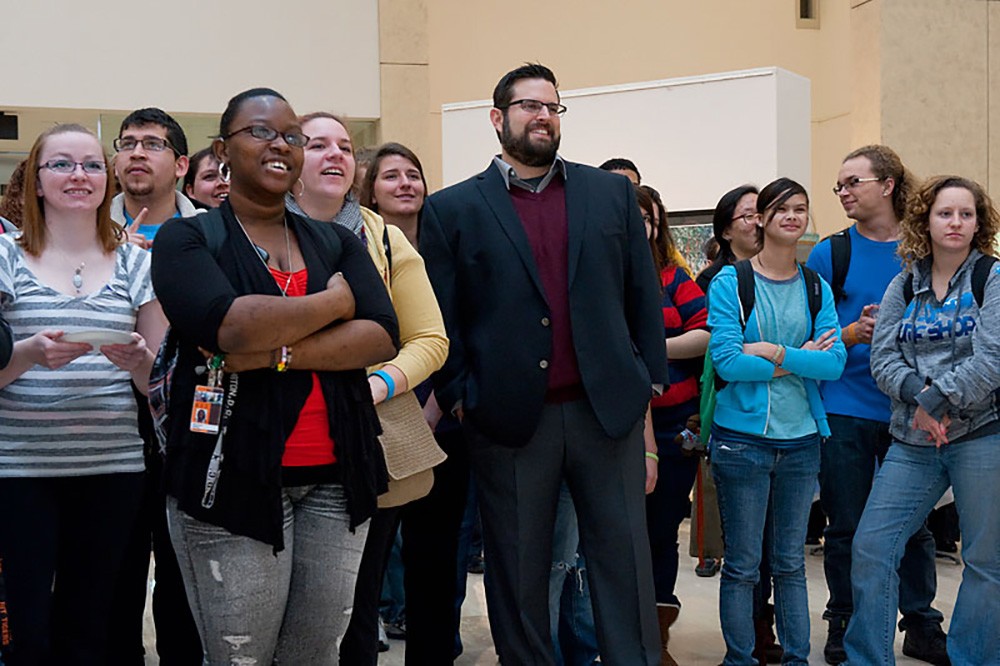 A reception honoring Todd Pagano, associate professor and director of NTIDâs Laboratory Science Technology program, was held Dec. 13 at the Dyer Arts Center. Pagano was named 2012 U.S. Professor of the Year at a ceremony in Washington, D.C., last month. Pagano, center, said he shares his award with his students. About 200 students, faculty, staff, relatives and government representatives attended. -