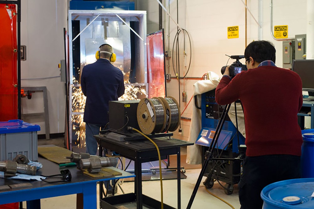 A television crew from SBS (Seoul Broadcasting System) visits the Center for Integrated Manufacturing Studies on Dec. 13. The crew was here as part of the production of a documentary, The Great Rebirth. Scheduled to air Jan. 27 on the national TV and radio network for South Korea, the documentary reports how the lack of raw materials and a struggling global economy are driving remanufacturing worldwide. In addition to filming a variety of labs inside CIMS, the TV crew interviewed Nabil Nasr, director of the Golisano Institute for Sustainability, which is recognized as a world leader for applied research in remanufacturing. -