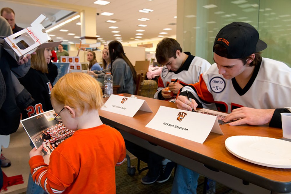 Barnes & Noble @ RIT hosted a meet and greet with the RIT menâs hockey team on Dec. 15 to support Hockey Coaches Care, the official charitable foundation of the American Hockey Coaches Association. The event featured autographs, auctions, team photos and special-edition ornaments for sale. -