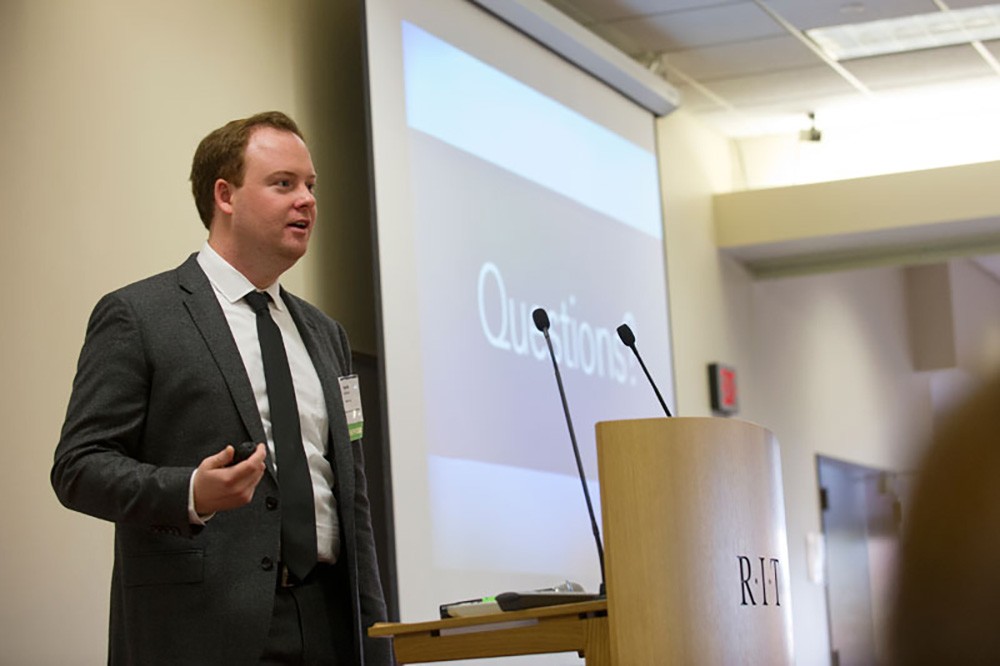Austin McChord, who graduated from RIT with a degree in bioinformatics in 2009, is the CEO and founder of Datto, recently recognized as the No. 1 Fastest Growing Backup and Security System in the U.S. by Inc. 500. McChord was the keynote speaker at the ninth annual Entrepreneurâs Conference sponsored by the E. Philip Saunders College of Business on Oct. 19. -