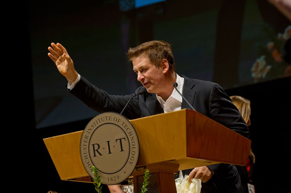 RIT welcomed film, stage and television actor Alec Baldwin as this yearâs Horton Distinguished Speaker Oct. 20 in the Gordon Field House and Activities Center as part of Brick City Homecoming & Family Weekend, Oct. 19-21. Baldwin has appeared in more than 40 films, including The Cooler, The Hunt for Red October and The Departed. On television, Baldwin currently stars as Jack Donaghy on NBCâs 30 Rock. Baldwin is also a dedicated supporter of causes related to public policy and the arts. -