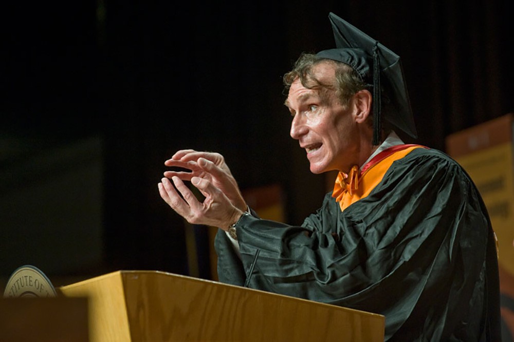 Bill Nye, scientist and beloved TV personality, provided the keynote address at RITâs 127th commencement celebration May 25 in the Gordon Field House and Activities Center. Nyeâs message on fostering a scientifically literate society proved popular among graduates, many of whom grew up watching âBill Nye the Science Guyâ during its originally run on public television from 1992 to 1998. To see more photos from Academic Convocation, go to bit.ly/Kb0pEG. -