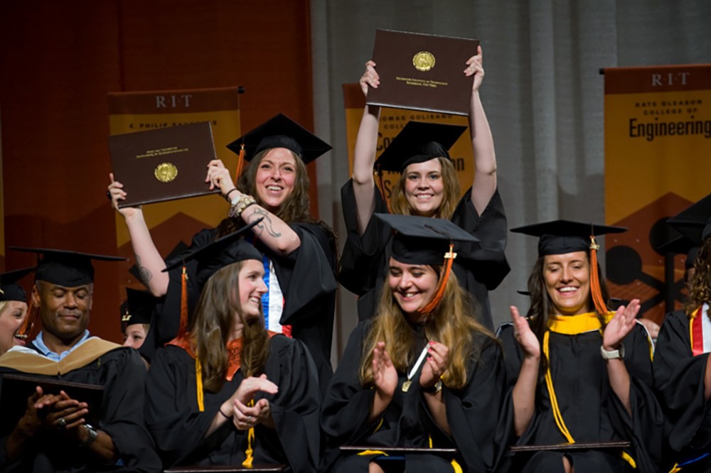 RIT celebrates its new crop of graduates with the universityâs 127th commencement. The two-day observance kicked off during Academic Convocation on May 25 in Gordon Field House and Activities Center. During the ceremony, RIT President Bill Destler conferred degrees on both undergraduate and graduate candidates. To see more photos from Academic Convocation, go to bit.ly/Kb0pEG. -