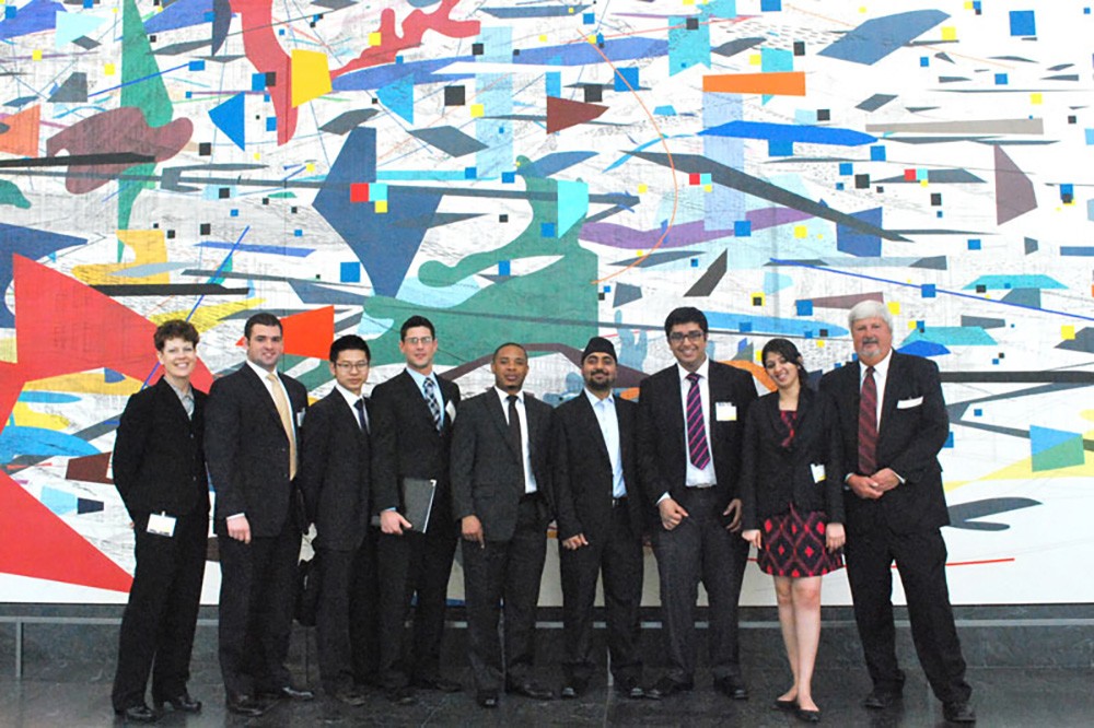 There are dollar signs associated with RITâs Financial Management Association, a student organization under the helm of the E. Philip Saunders College of Business. Members get to manage real money, track an investment portfolio with a market value of $110,000 and decide whether to invest or not invest based on their analysis. Eight members presented financial assessments during a late-April field trip, as they met with company executives in New York Cityâs financial marketplace. Jaré Allocco Allen, left, assistant controller at RIT, accompanied students William (Jon) Weintraub, Guangjun Ding, Troy Lubberts, Russell Sisipenzi, Harpreet Singh, Deep Ashar and Seerat Sodhi, along with Daniel Tessoni, right, accounting professor in the Saunders College (not pictured is Financial Management Association President Mayank Bindal). Tessoni was responsible for arranging executive meetings at WL Ross & Co. and International Textile Group (Cone Denim). James Watters, senior vice president of finance and administration at RIT, was responsible for arranging the executive meeting at Goldman, Sachs & Co. -