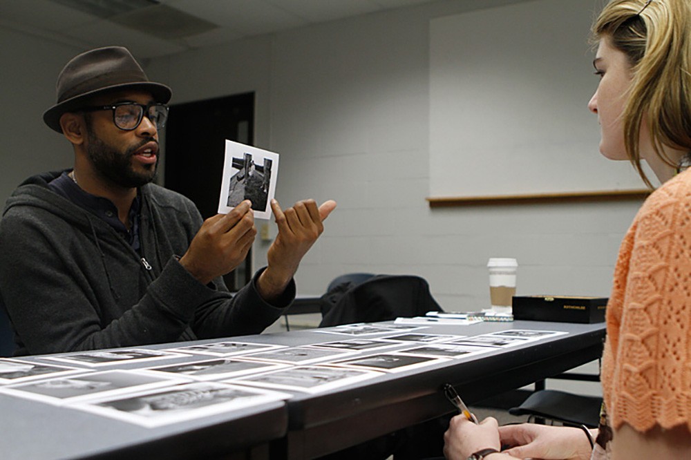 Photographer Kwaku Alston was recognized at this yearâs Distinguished Alumni Awards. During his campus visit on April 13, Alston met with students and reviewed portfolios. -