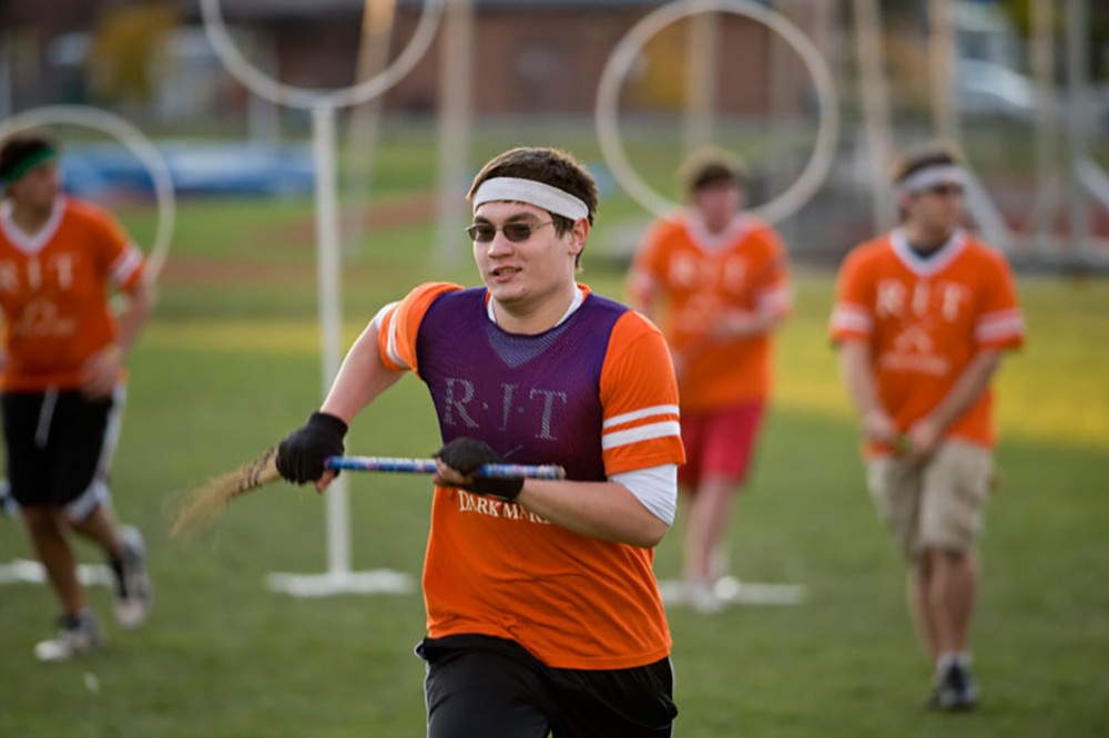 The RIT Quidditch Club practices weekly next to Gordon Field House. The Dark Marks, the competitive arm of the club, came in 2nd place against 100 other teams in the 5th Quidditch World Cup, Nov. 12-13, in New York City. -