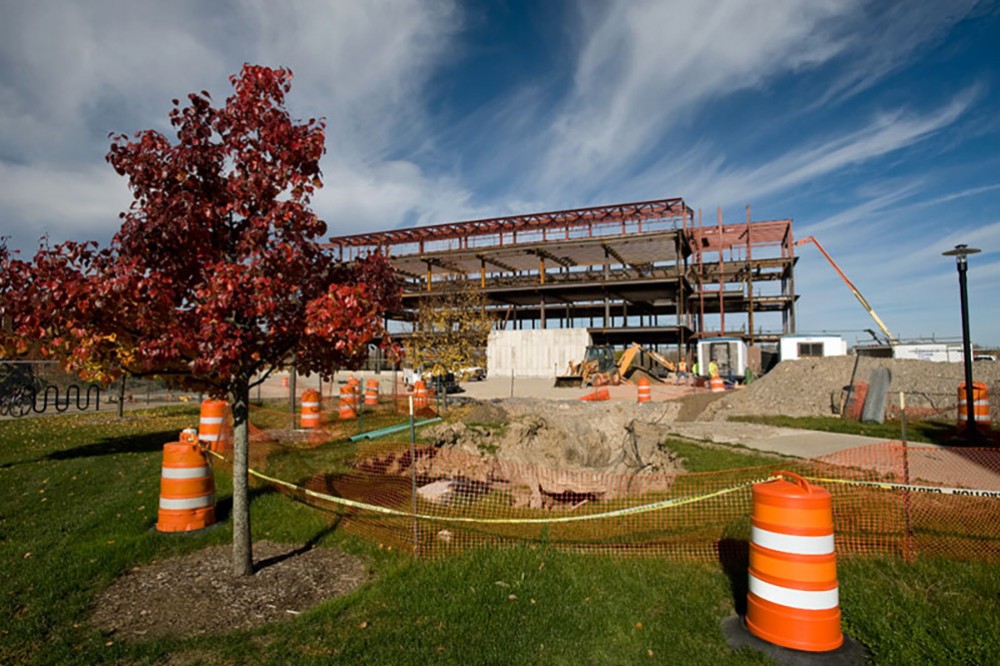 Construction is moving along on the Golisano Institute for Sustainability. The facility was made possible through a $13.1 million grant from the National Institute of Standards and Technology and $10 million from New York state. -