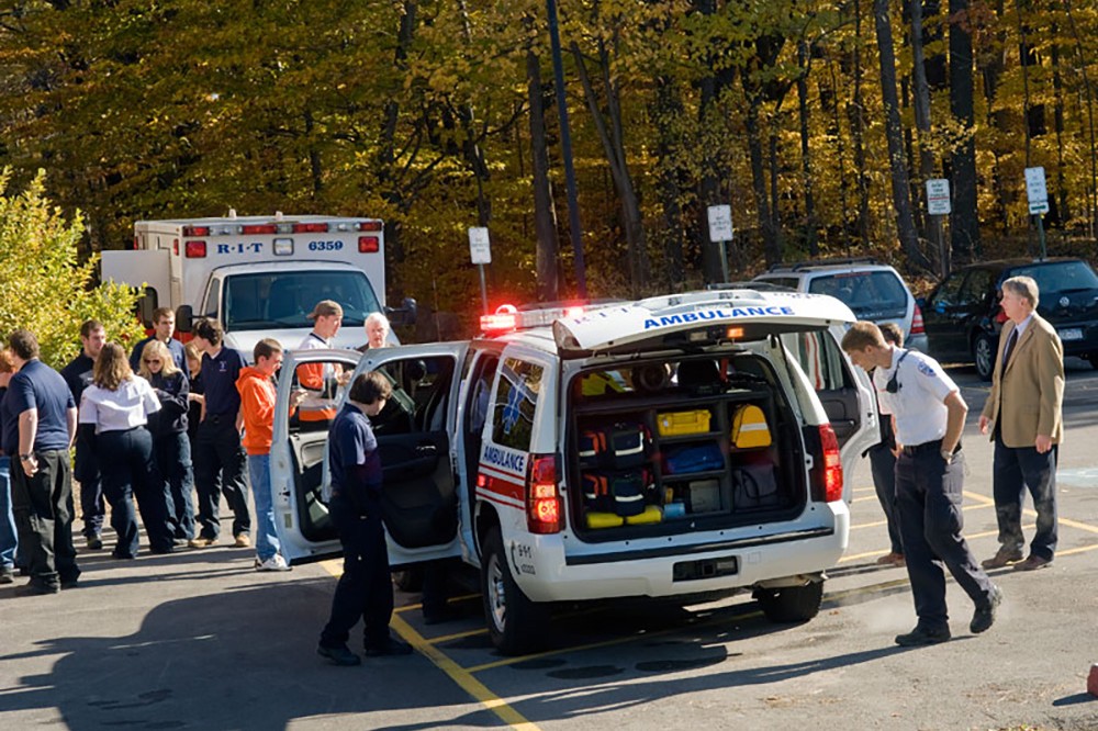 RIT Ambulance held a reception Nov. 4 to let community members see Defib 63, its new 2011 Chevy Tahoe first-response vehicle. The vehicle is equipped to respond to mass-casualty incidents and life-threatening emergencies. Defib 63 also has a low-frequency âhowlerâ siren that slightly rumbles nearby vehicles, warning other drivers of the ambulance. -