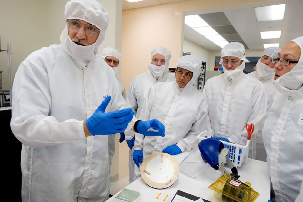 Area students participating in the advanced manufacturing and nano-tech certificate training program worked in the clean room in RITâs Kate Gleason College of Engineering as part of their coursework. The program prepares students for entry-level positions in advanced manufacturing and high-tech industries such as microelectronics and photovoltaics, two growing sectors in western New York. Students participated in classes on microelectronics, surface mount technology and polymer processing. The program is a joint venture between the Genesee County Economic Development Center, Genesee Community College and RIT. -