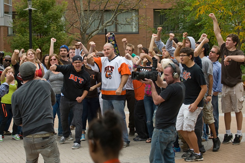 RIT/NTID alumni Sean Forbes, a rap musician; Matt Hamill, NCAA wrestling champ and former UFC contender; and Adrean Mangiardi, video director, took over the Frisina Quad on campus and enlisted student talent to film a music video for âThe Hammer,â a movie about Hamillâs life, which was filmed in part on the RIT campus and which will be opening in select theaters nationwide on Oct 27th. -