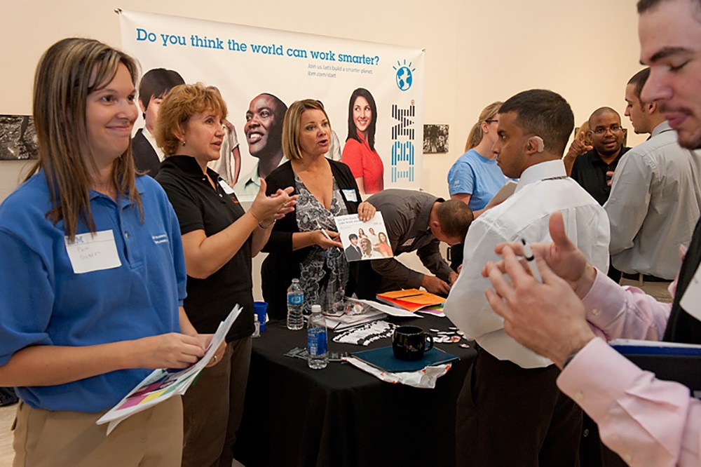 Hundreds of students attended the 11th annual NTID Job Fair on Oct. 12. More than 40 employers looking to fill summer co-ops and some permanent openings reviewed resumes and met with students.