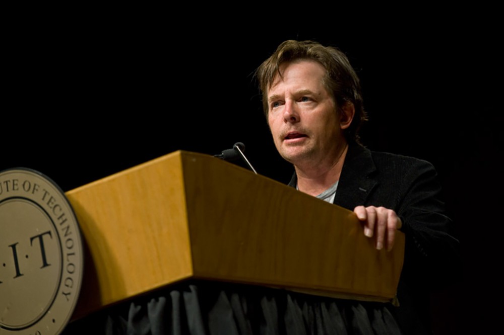 RIT welcomed actor, director and author Michael J. Fox as this yearâs Horton Distinguished Speaker Oct. 15, in the Gordon Field House and Activities Center. Fox added to the many events of RITâs Brick City Homecoming & Family Weekend, Oct. 14-16. Fox starred in the TV series Family Ties and Spin City, as well as the Back to the Future trilogy, Teen Wolf and The American President. Diagnosed with Parkinsonâs disease in 1991 at the age of 29, Fox has also become an advocate for increased research funding and awareness for Parkinsonâs disease through The Michael J. Fox Foundation for Parkinsonâs Research. -