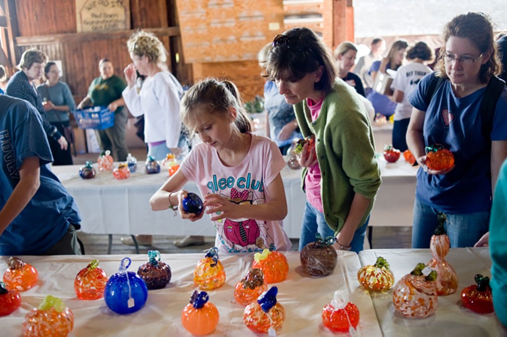 Unique hand-blown glass pumpkins, gourds and other glass items such as vases, paperweights and drinking glasses were on sale during the annual Womenâs Council of RIT fundraiser Oct. 8. The items were made by students and faculty from the School for American Crafts. Proceeds from the sale will benefit the School for American Craftsâ Visiting Artists Series as well as the Womenâs Council scholarships. Items left over will be for sale 10 a.m.â3 p.m. Oct. 12 in the SAU lobby. -