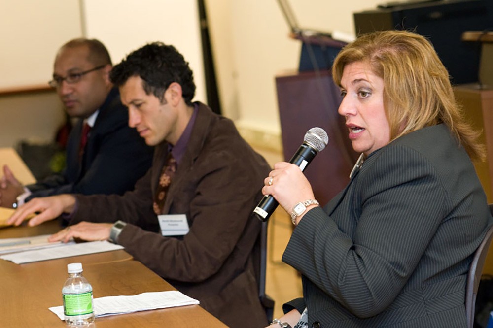 RIT hosted the sixth annual Western New York Restorative Justice Conference Oct. 6-7. The conference consisted of breakout sessions and panel discussions featuring leaders from organizations using restorative justice practices within the courts, classrooms and other community venues. Sessions also provided training on how to use these processes in agreement with the criminal justice system with a focus on saving costs and providing restitution and closure that can ultimately promote healing and build healthy communities. This keynote address featured, from right, Monroe County Court Judge Vicki Argento, Derek Miodownik, a conflict resolution and community justice expert, and David Soares, Albany County District Attorney, presenting âMaking Systemic Change With Restorative Practices.â -