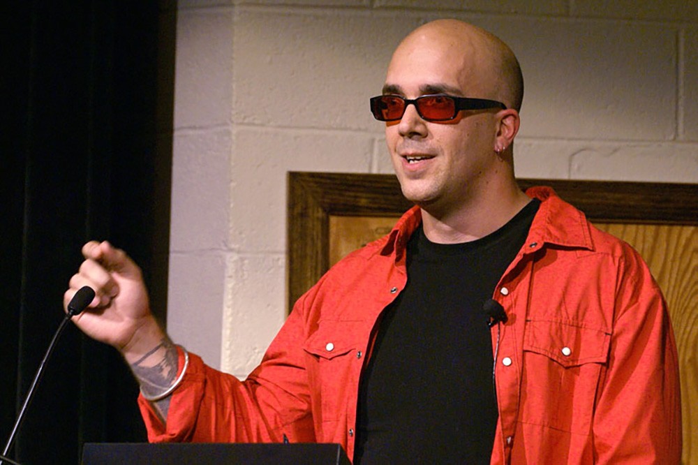 RITâs Caroline Werner Gannett Project âVisionaries in Motion Vâ lecture series continued Oct. 10 with a talk by Ryan Knighton, author, screenwriter and professor, who presented âItâs Like, for Real: A Life in Autopathography.â Knighton, who gradually lost his sight after being diagnosed with retinitis pigmentosa at age 18, wrote his memoir about the experience and was shortlisted for the Stephen Leacock Medal, Canadaâs national award for the funniest book of the year. âHilarious, unsentimental and feisty, Ryan Knighton engages both sighted and blind worlds with issues he has encountered at the crossroads of memory, storytelling, technology and the human body,â says Mary Lynn Broe, the Caroline Werner Gannett Professor of Humanities at RIT. The next speaker in the series is Fred Ritchin, author and professor of photography and imaging at New York Universityâs Tisch School of the Arts, who comes to RIT Nov. 3. -
