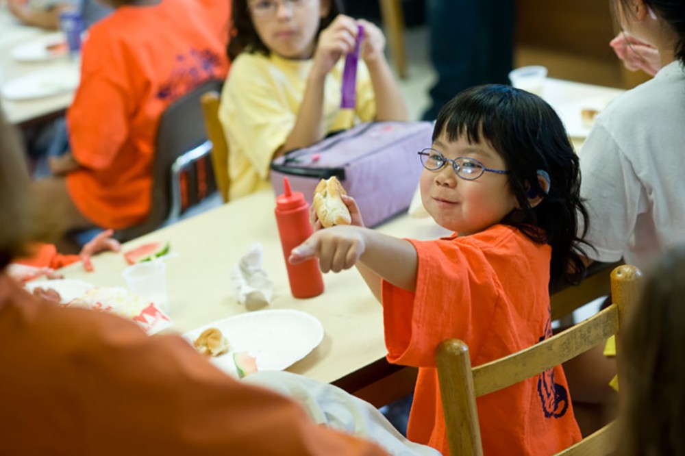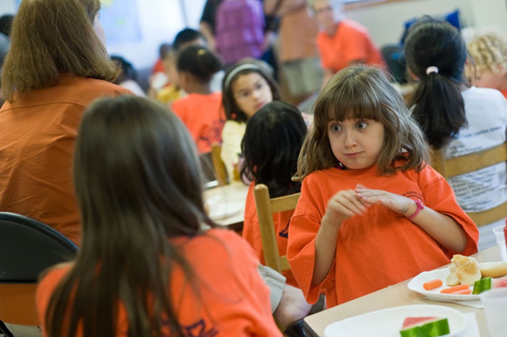 Lil Kids on Campus, a six-week camp for children attending Margaretâs House Child Care Center at RIT, welcomed children from Julie Shahinâs kindergarten class at Rochester School for the Deaf on Aug. 12. All of the children enjoyed an outdoor carnival with games and activities and shared lunch together. -