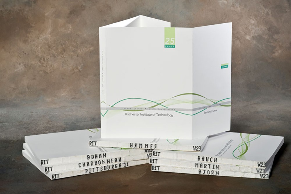 RITâs student chapter of the Technical Association of the Graphic Arts won for best overall publication at this yearâs international competition held in Pittsburgh. RIT competed against universities from the United States and Canada. Part of the bookâs design included a foldout, removable cover featuring a timeline of the history of graphic arts. The students chose a printed spine, that looked like ribbon. Students developed a variable data workflow to personalize each spine with the last name of the person who was to receive a book copy. The bookâs content included technical papers written by School of Print Media students and faculty. -