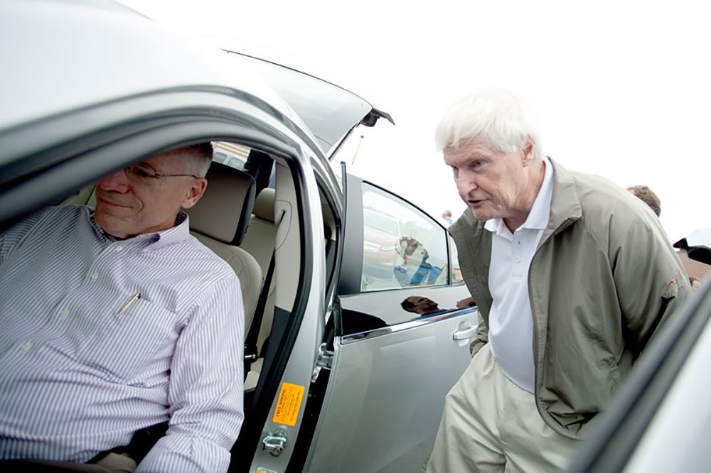 RIT President Bill Destler joined university researchers and representatives from General Motors at a seminar on June 22 at RIT. Destler discussed the research and development done at RIT that contributed to the most fuel-efficient compact car on the market, the Chevy Volt. -