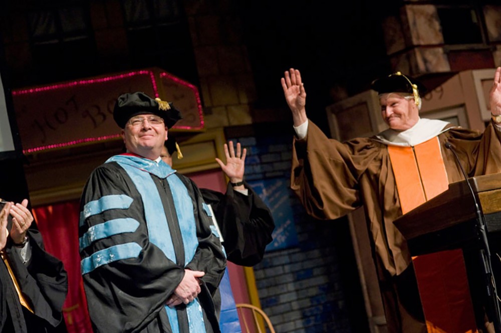 Gerard Buckley, standing with RIT President Bill Destler, is the first alumnus in NTIDâs history to be named president of the college. The academic installation was held May 6 in Panara Theatre. Buckley has served NTID for 20 years, most recently as assistant vice president for college advancement. -