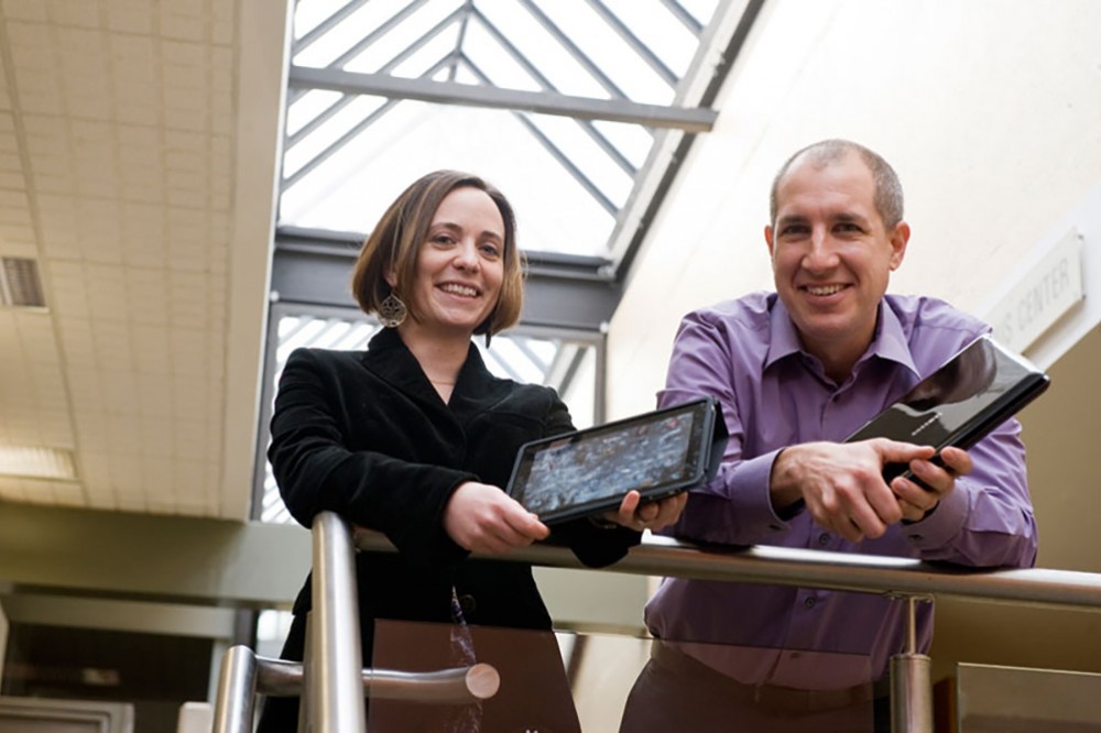 Andrea Hickerson, assistant professor of communication in RITâs College of Liberal Arts and Victor Perotti, associate professor of management information systems at RITâs E. Philip Saunders College of Business, have been awarded a $154,000 grant from the Knight Foundation for âRising Above the Crowd,â a real-time experiment in community engagement using mobile devices and interactive displays. It will be formally launched during Imagine RIT: Innovation and Creativity Festival on May 7. -