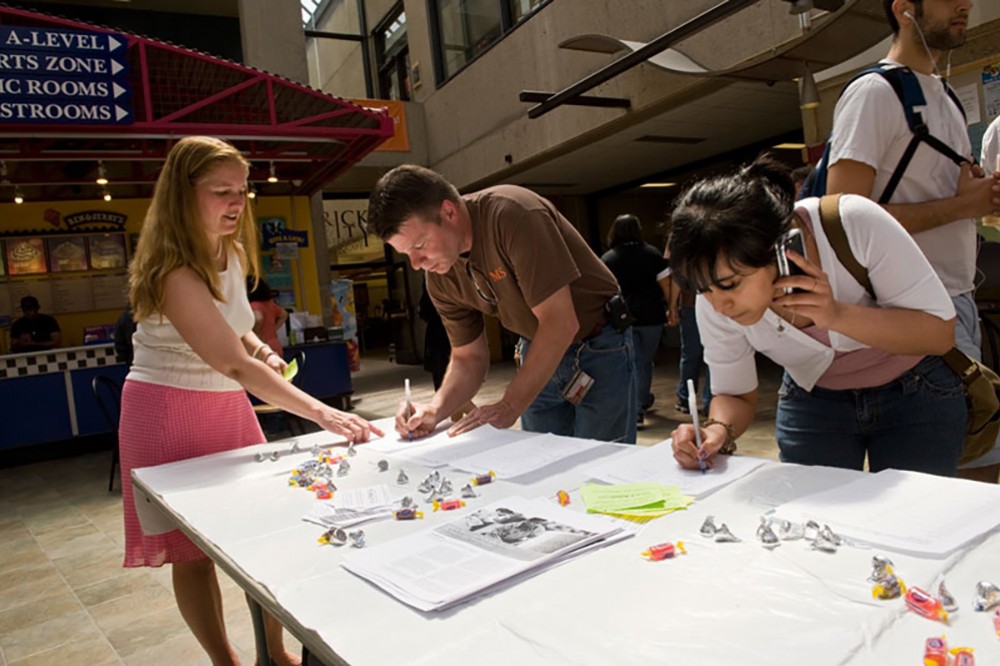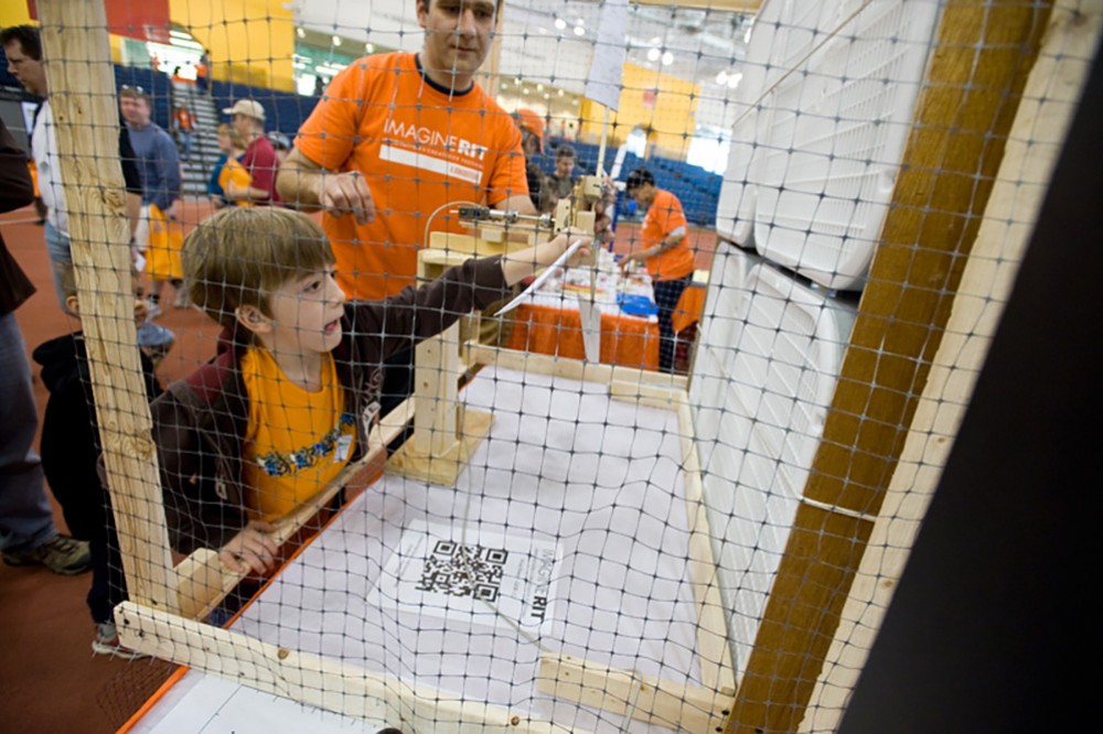 Mechanical Engineering and the Golisano Institute of Sustainability collaborated to create an interactive exhibit that allowed visitors to explore wind power using four fans at the 2011 Imagine RIT: Innovation and Creativity Festival on May 7. -