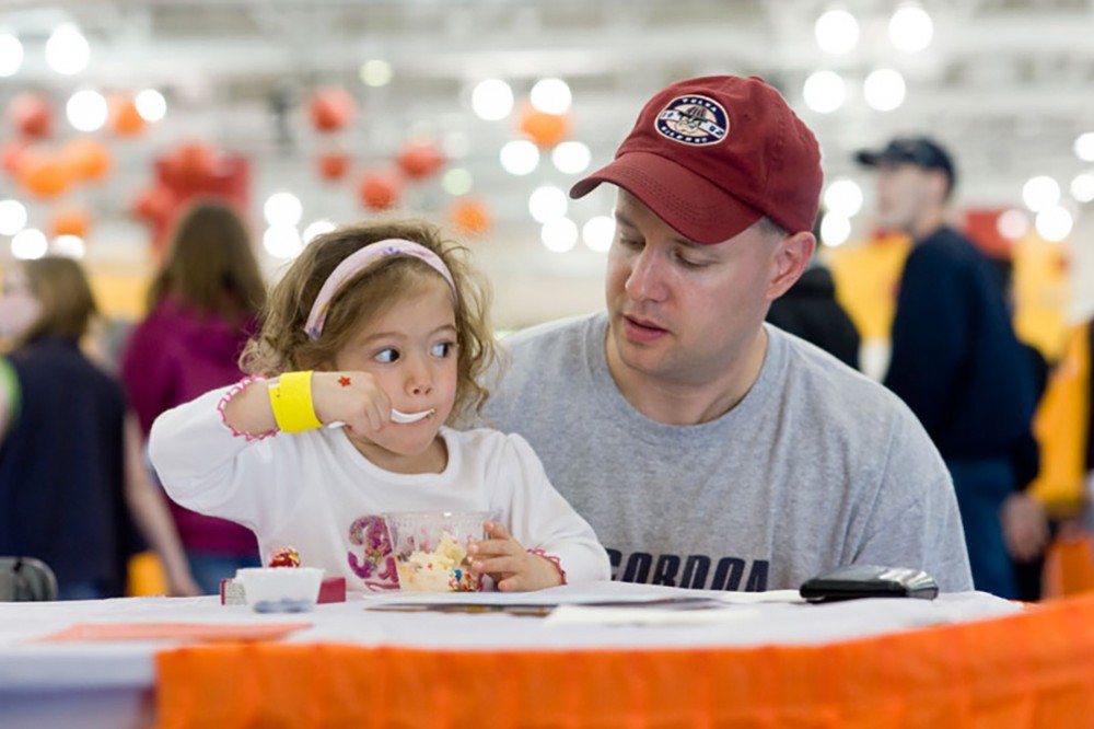 Ritchieâs Ice Cream Experience, an interactive exhibit at the 2011 Imagine RIT: Innovation and Creativity Festival, concludes with an ice cream sundae. Here, three-year old Olivia Little samples the treat with her father, Jonathan. -