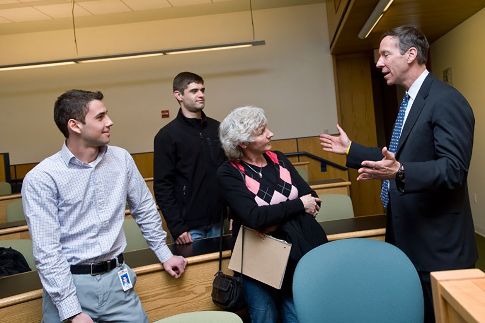 William McNabb, right, chief executive officer of Vanguard, was the keynote speaker at the Executive Leaders Network Luncheon on May 6, at the Genesee Valley Club. Prior to the event, which was sponsored by the E. Philip Saunders College of Business, McNabb held an informal discussion with RIT students on campus. -