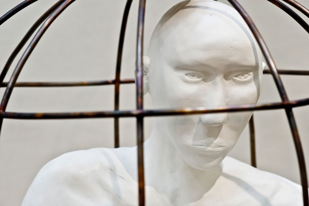 Graduate Thesis III is on view through May 7 in Bevier Gallery. A detail from âInvisible Cage,â created by MFA student Pei-Chen Chien, is composed of copper pipe, plaster and Styrofoam. -