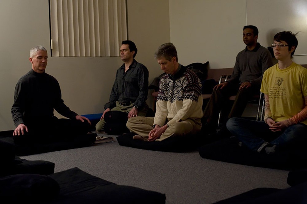 As part of RITâs health and wellness offerings, the Counseling Center offers meditation to RIT students, faculty and staff. This session was lead by Patrick Walsh, left. -