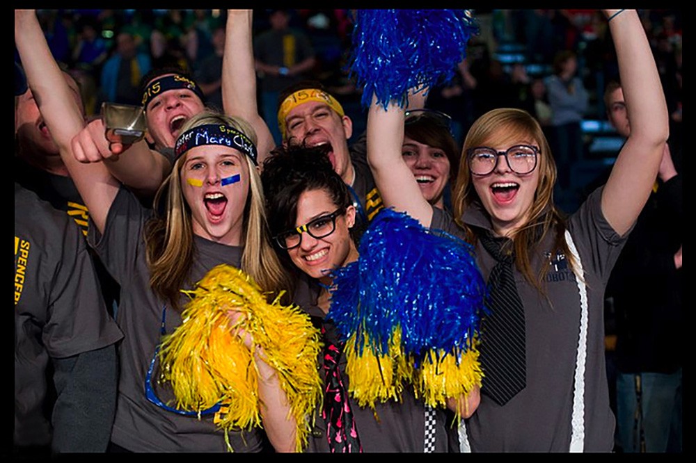Hundreds of competitors and their robots took the field in Gordon Field House March 4-5 for the 2011 Finger Lakes Regional FIRST Robotics competition. More than 40 high school teams from across the Northeast U.S. and Canada participated in LOGO Motion. Here, students cheer for their team. -
