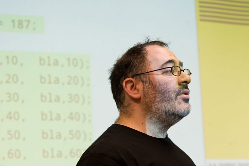 Golan Levin, artist, performer, composer and engineer, is a leader in the use of human-computer interaction to infuse art and design with new forms of reactive expression. Levin highlighted humansâ creative relationship with machines, using work from his online, installation and performance media, during a March 8 presentation, âInteractive Art and Speculative Human-Computer Interaction.â It was part of the Caroline Werner Gannett Projectâs âVisionaries in Motion IVâ speaker series. In conjunction with the talk, Levin hosted two workshops focused on art and performance on March 9. -