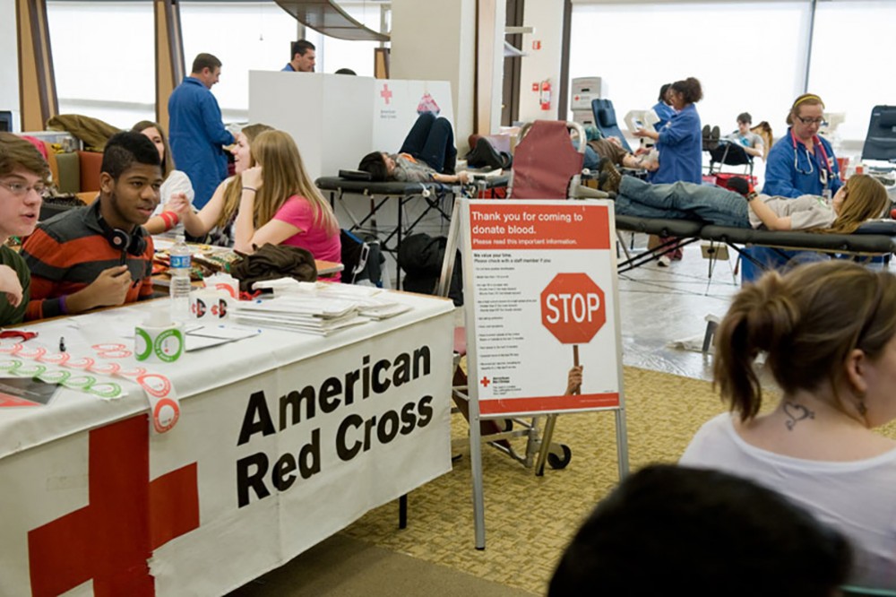 Students from RITâs Pathways to Service Learning course teamed up with the American Red Cross to host a blood drive Feb. 11 in the Fireside Lounge. Pathways is part of the First-Year Enrichment curriculum and provides students with a choice of themesâleadership, service or innovation and creativityâthat highlight concepts related to long-term success. -