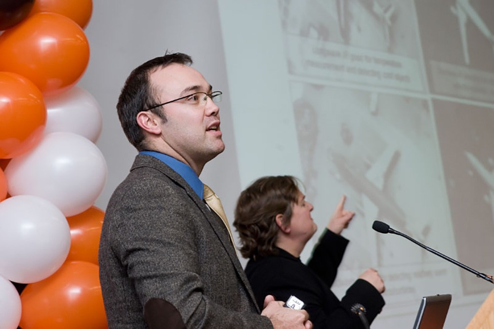 Jan van Aardt, associate professor in the Chester F. Carlson Center for Imaging Science, discussed the impact of RIT research following last yearâs earthquake in Haiti. During the annual Principal Investigators Reception, hosted by Sponsored Research Services on Feb. 11, van Aardt addressed how RITâs thermal imaging expertise provided relief and recovery agencies with critical insights needed to manage the earthquakeâs aftermath. -