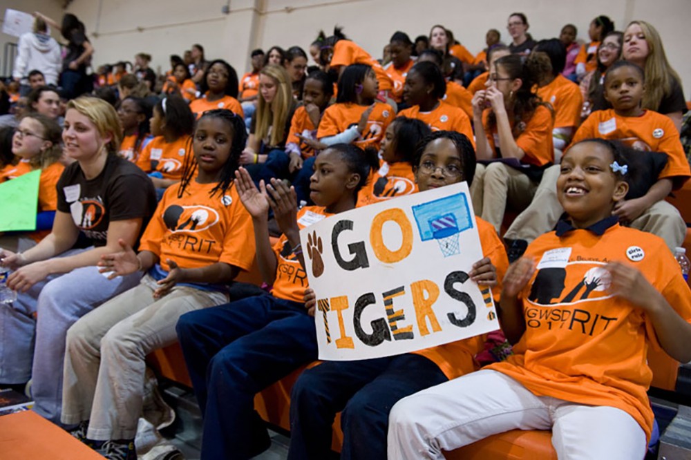 More than 200 female students in the Rochester City School District visited RIT for Women in Sports Day Feb. 1. The young students, ranging in age from 10-16, were paired up with female RIT studentsâmany of them student-athletesâfor an evening of mentoring and celebration. The students were also invited to cheer on the RIT womenâs basketball team during their game that evening. The evening was hosted by RITâs Center for Women and Gender. -