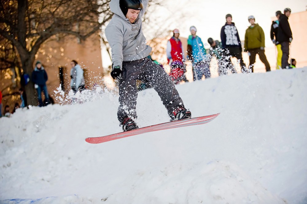RITâs second annual Freeze Fest kicked off Feb. 4. with a variety of wintry events including Rail Jam. Travis Newberry, a second-year mechanical engineering student, showed off his skills to onlookers. -