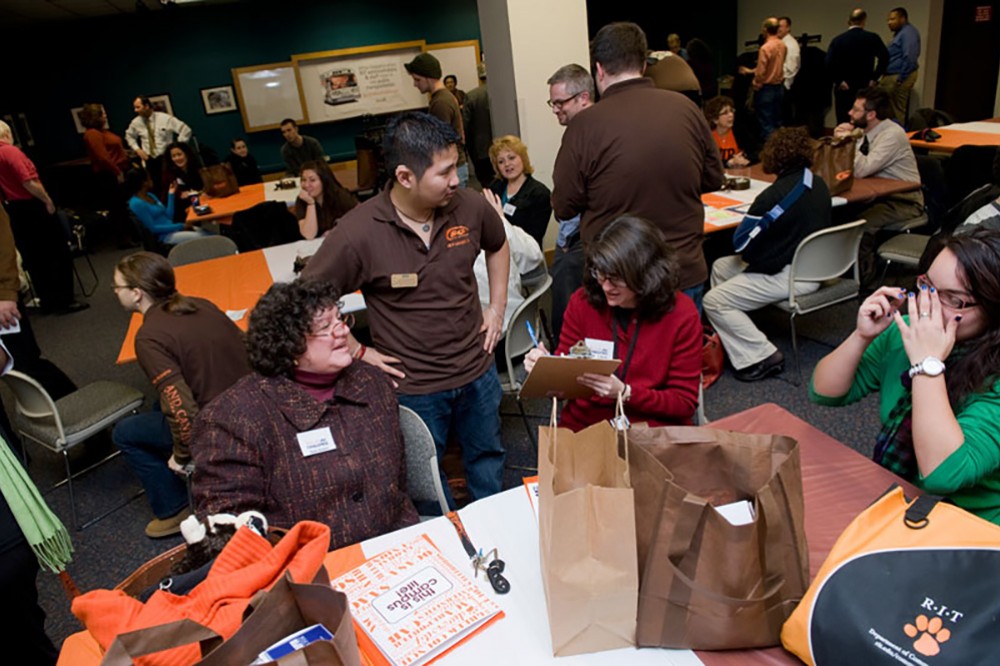 Twenty RIT decision makers spent three days and two nights at the RIT Inn & Conference Center, Global Village and Perkins Green apartments for The REAL RIT Challenge, sponsored by Student Government. The challenge was to master campus transportationâlearning how to read shuttle bus schedules to arrive on campus on time, and to get to off-campus locations such as Wegmans, Park Point and Dinosaur Bar-B-Que. The group gathered on Jan. 19 to receive information packets and have dinner. -